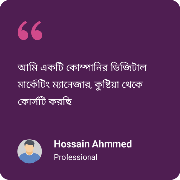 কোর্স শুরু করলে আপনি পাবেন পার্সোনাল মেসেজ প্যানেল, সেখানে সরাসরি মেন্টরের সাপোর্ট নিতে পারবেন, এবং কানেক্ট হতে পারবেন এছাড়াও “সাপোর্ট সেন্টার” থেকে প্রয়োজনীয় সাহায্য পাবেন এবং সরাসরি কলে কথা বলতে পারবেন 01778704257 এই নাম্বারে* অতএব, শিখুন বাধাহীন ঘরে বসেই! দেশের যেকোনো প্রান্ত থেকে।