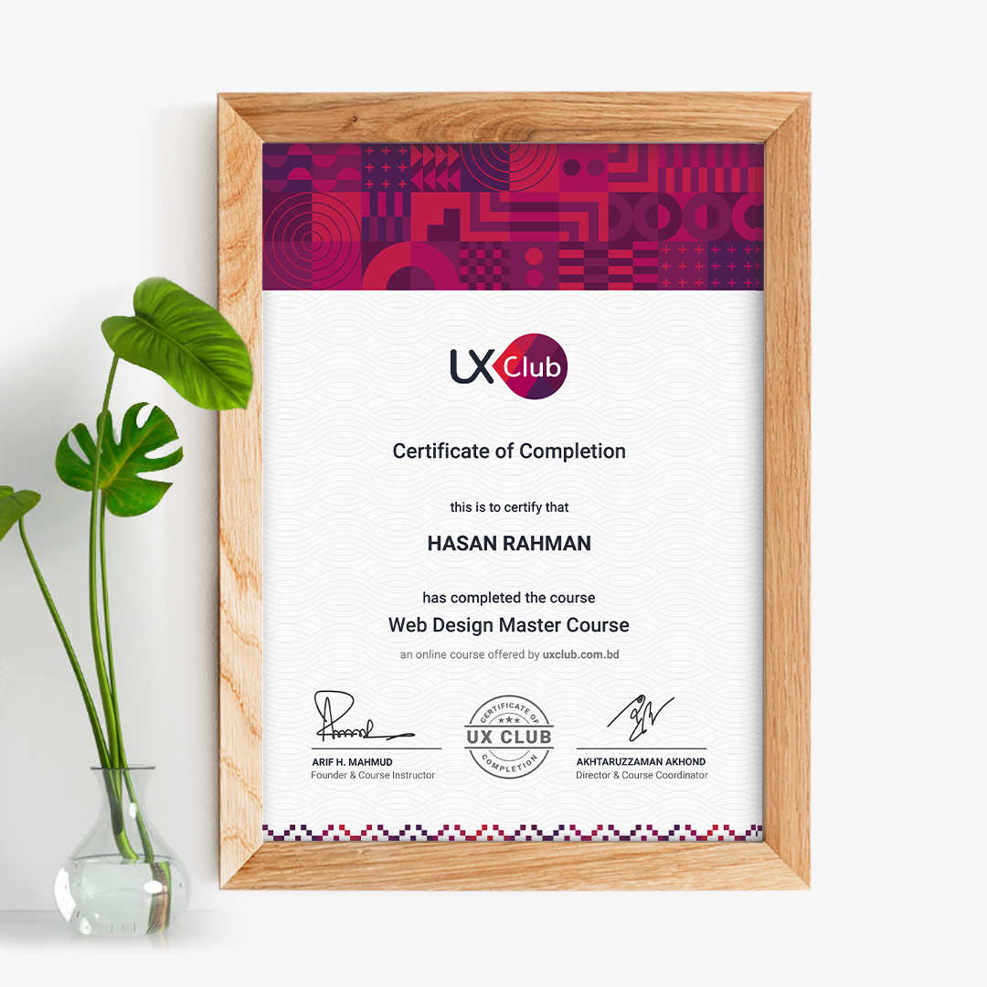 • কালার কম্বিনেশন, কালার থিউরি, রাইট এলিমেন্ট ব্যবহার এবং ওয়েব ব্র্যান্ডিং শিখবেন